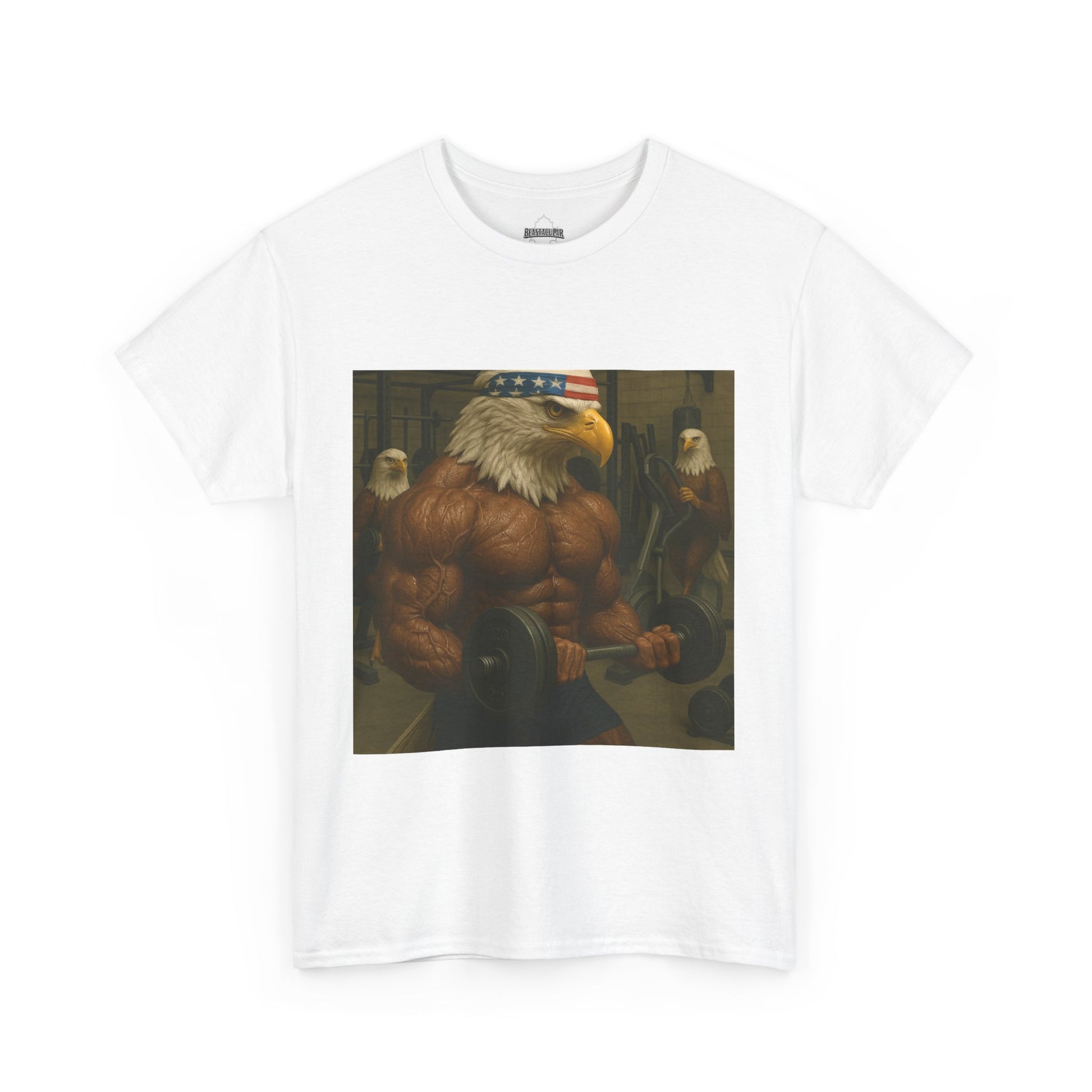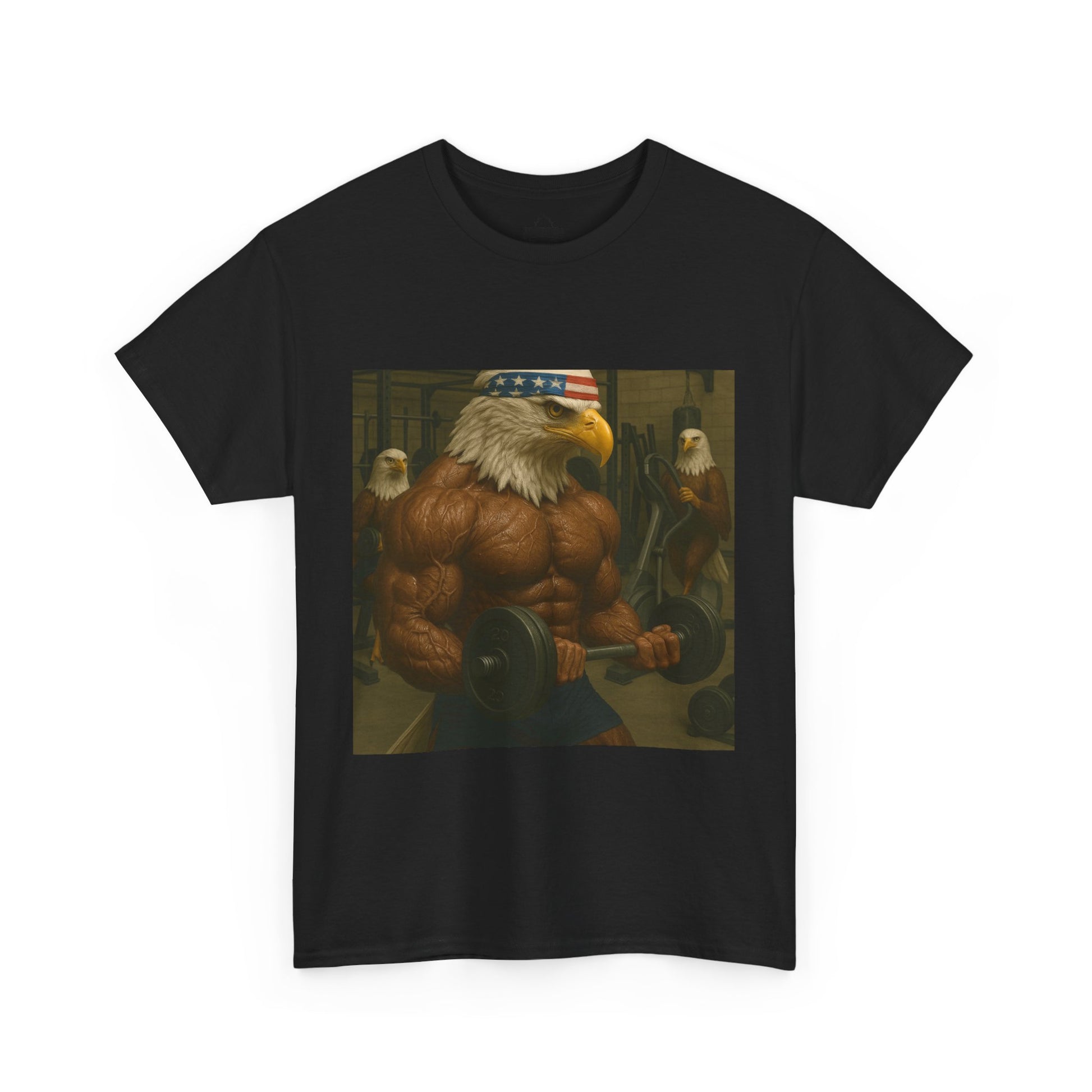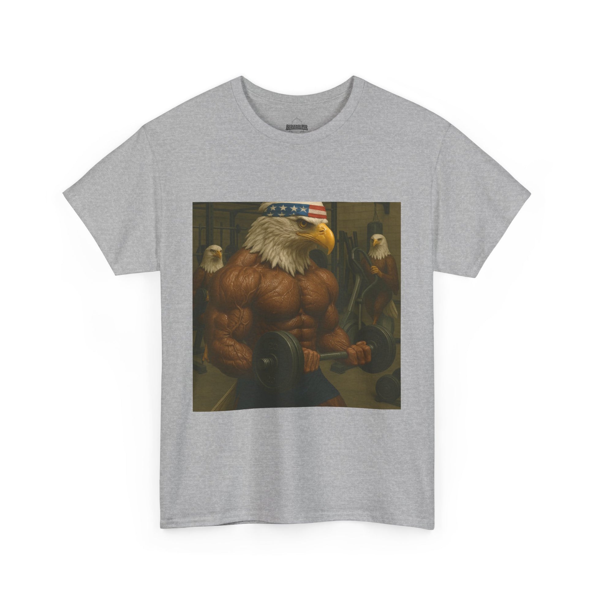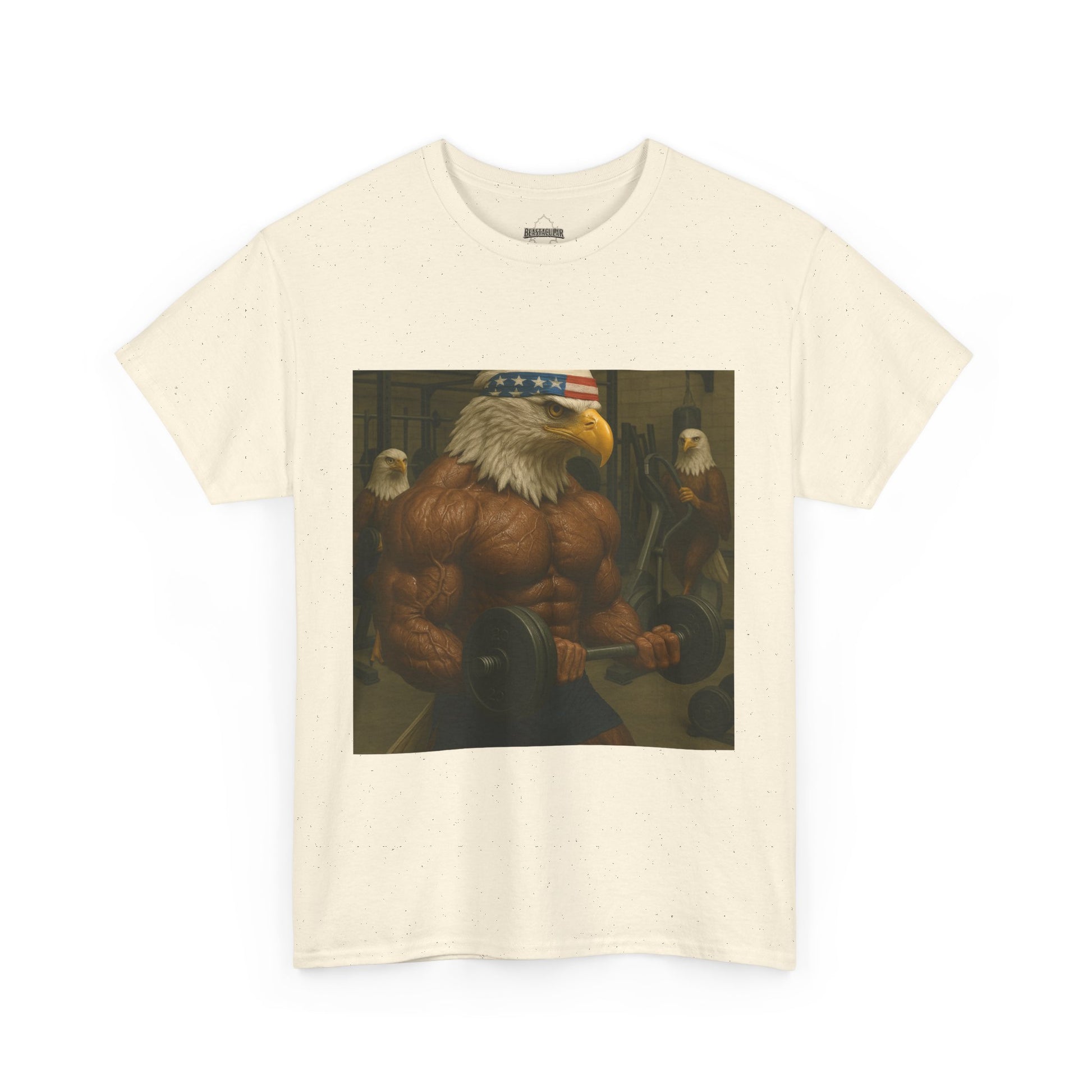 On the PowerHouse tee, a refined raptor hoists iron in a sleek fitness hall, observed in silent admiration by onlookers. Crafted in premium cotton with a muted print, it quietly fuels resolve and speaks for itself.