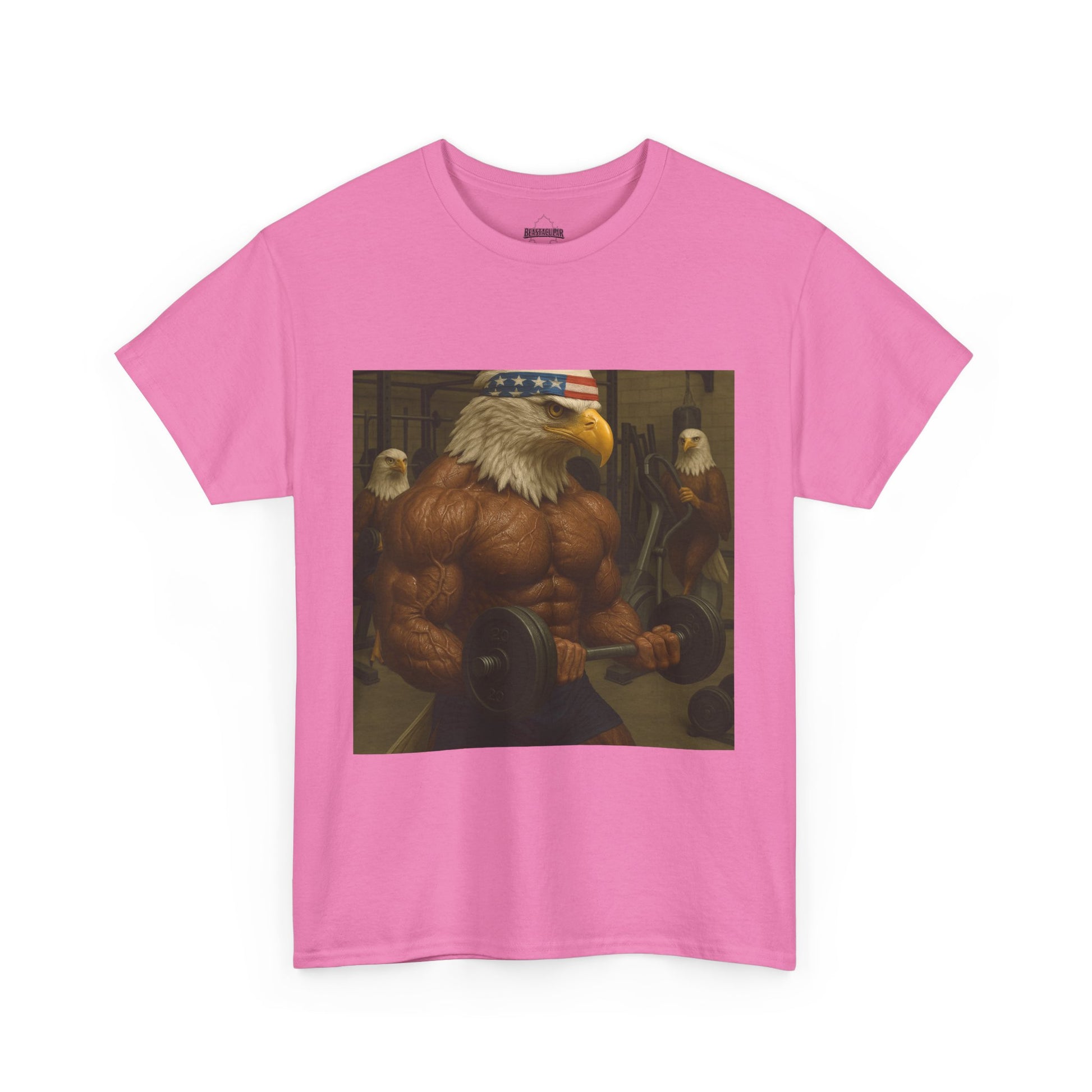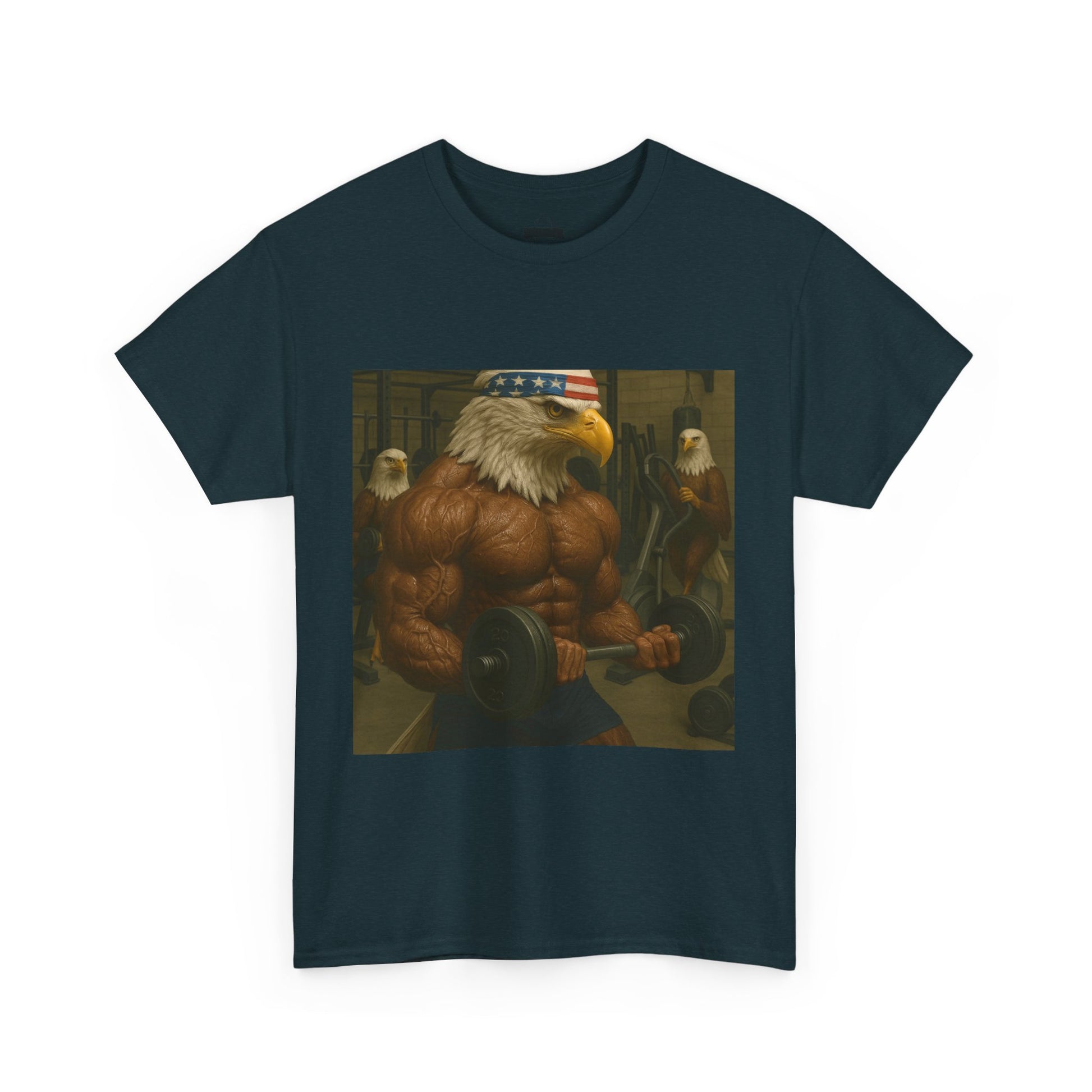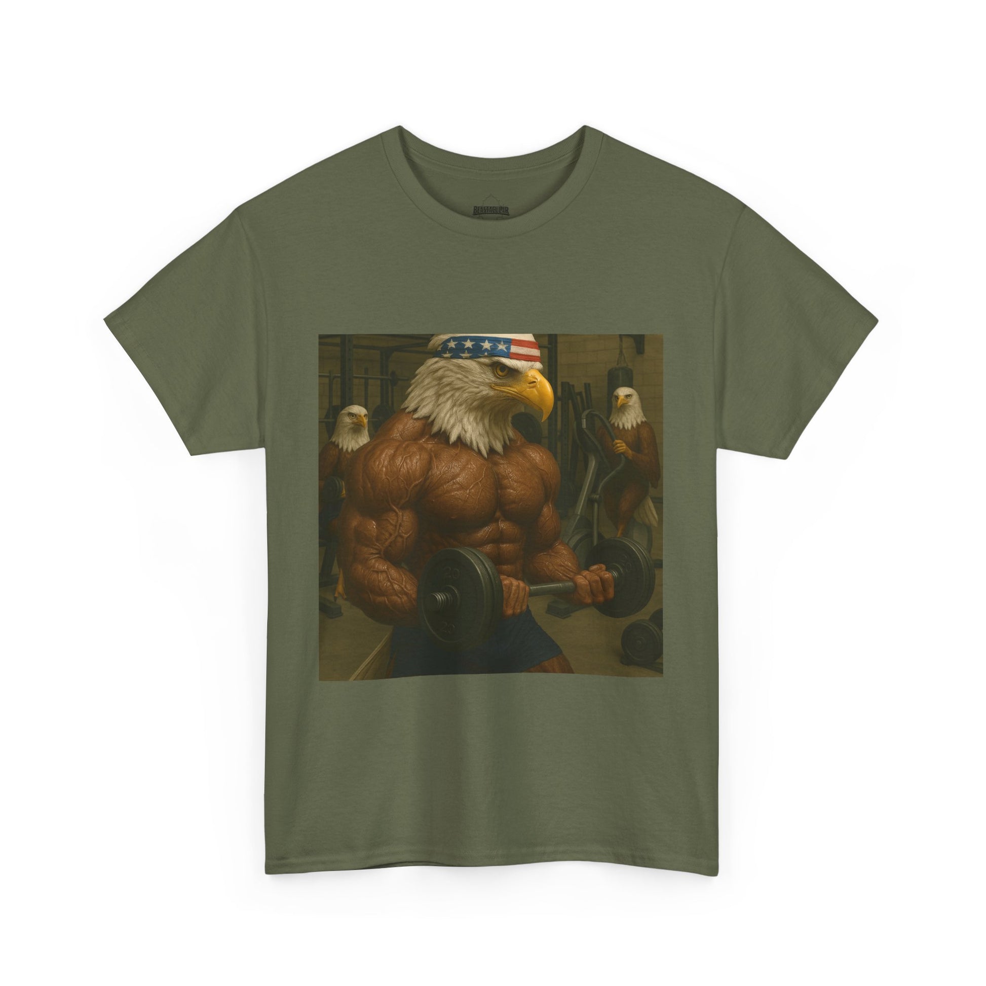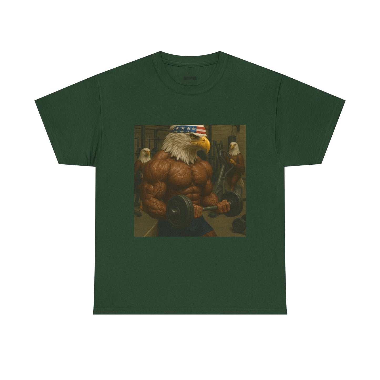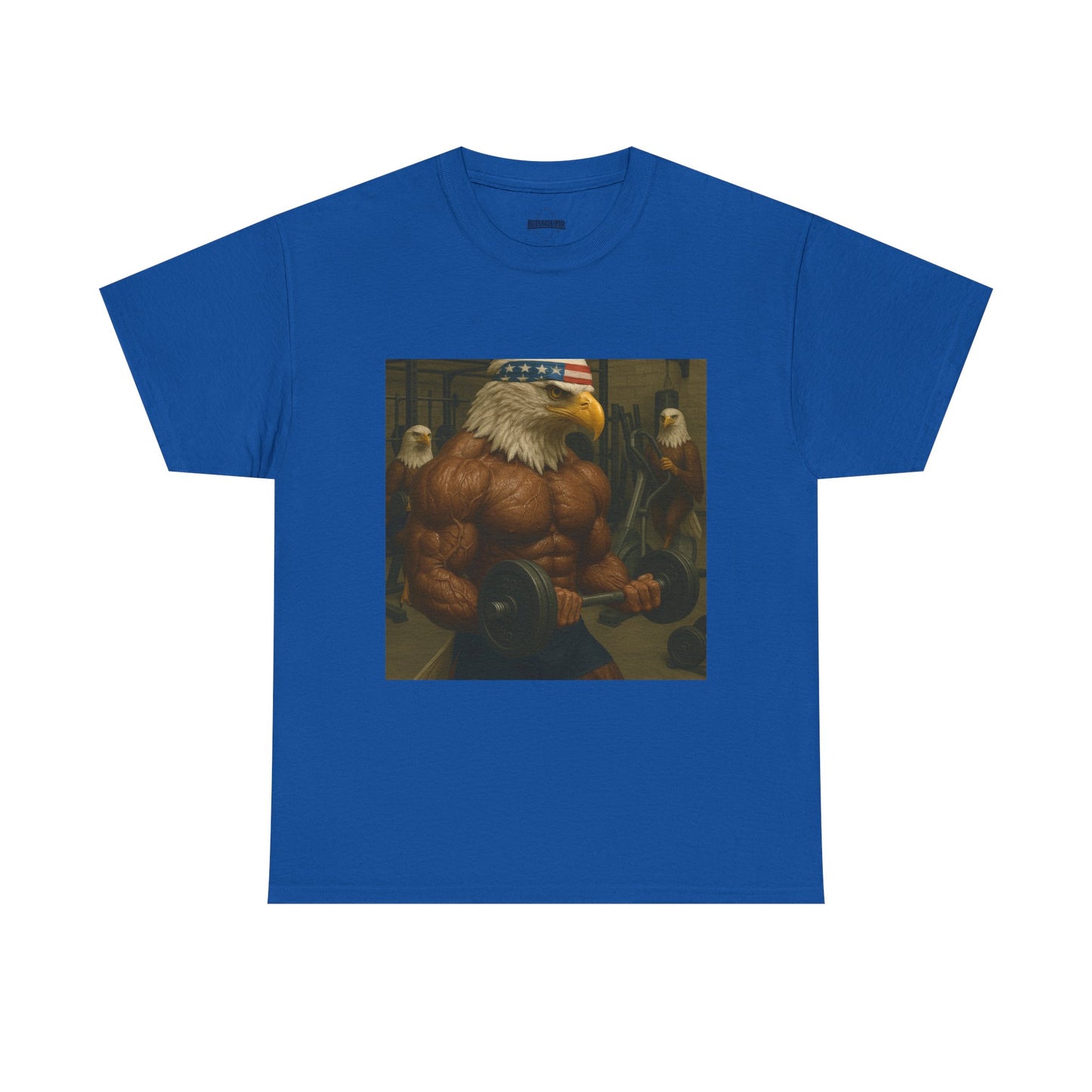 On the PowerHouse tee, a refined raptor hoists iron in a sleek fitness hall, observed in silent admiration by onlookers. Crafted in premium cotton with a muted print, it quietly fuels resolve and speaks for itself.