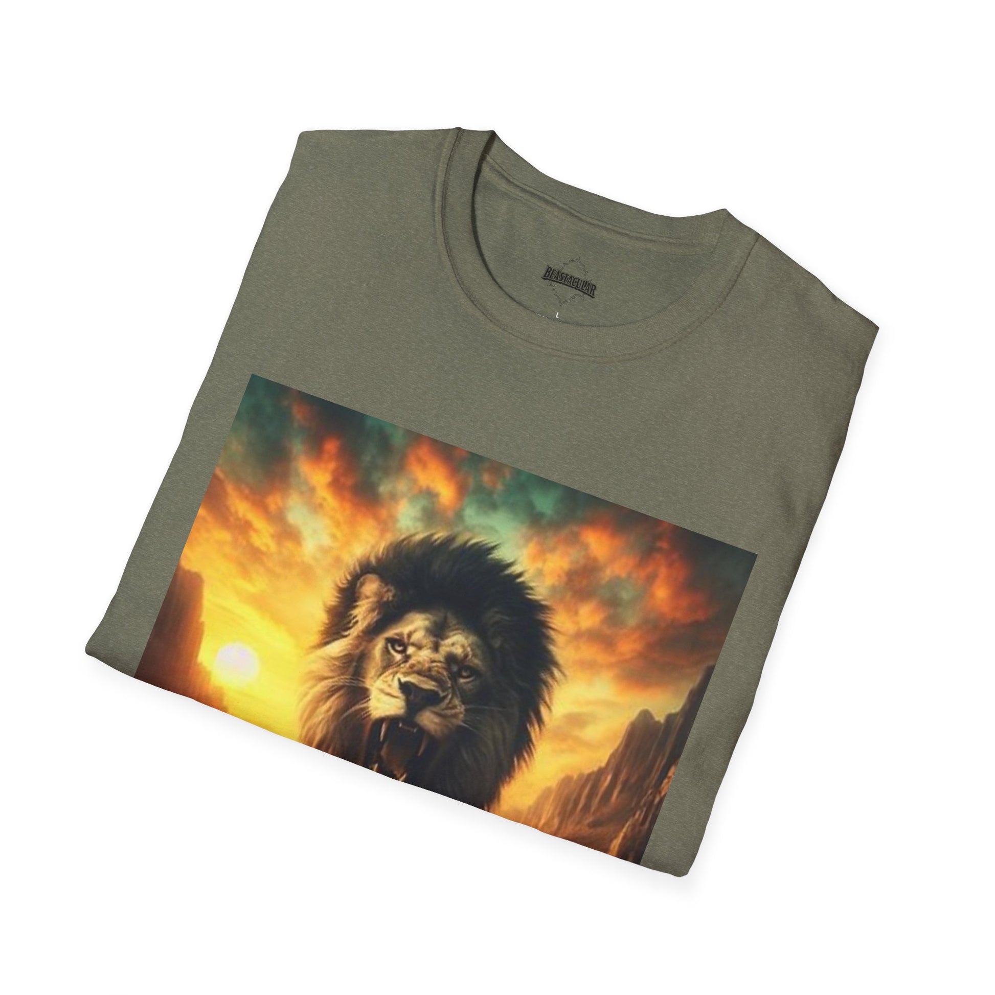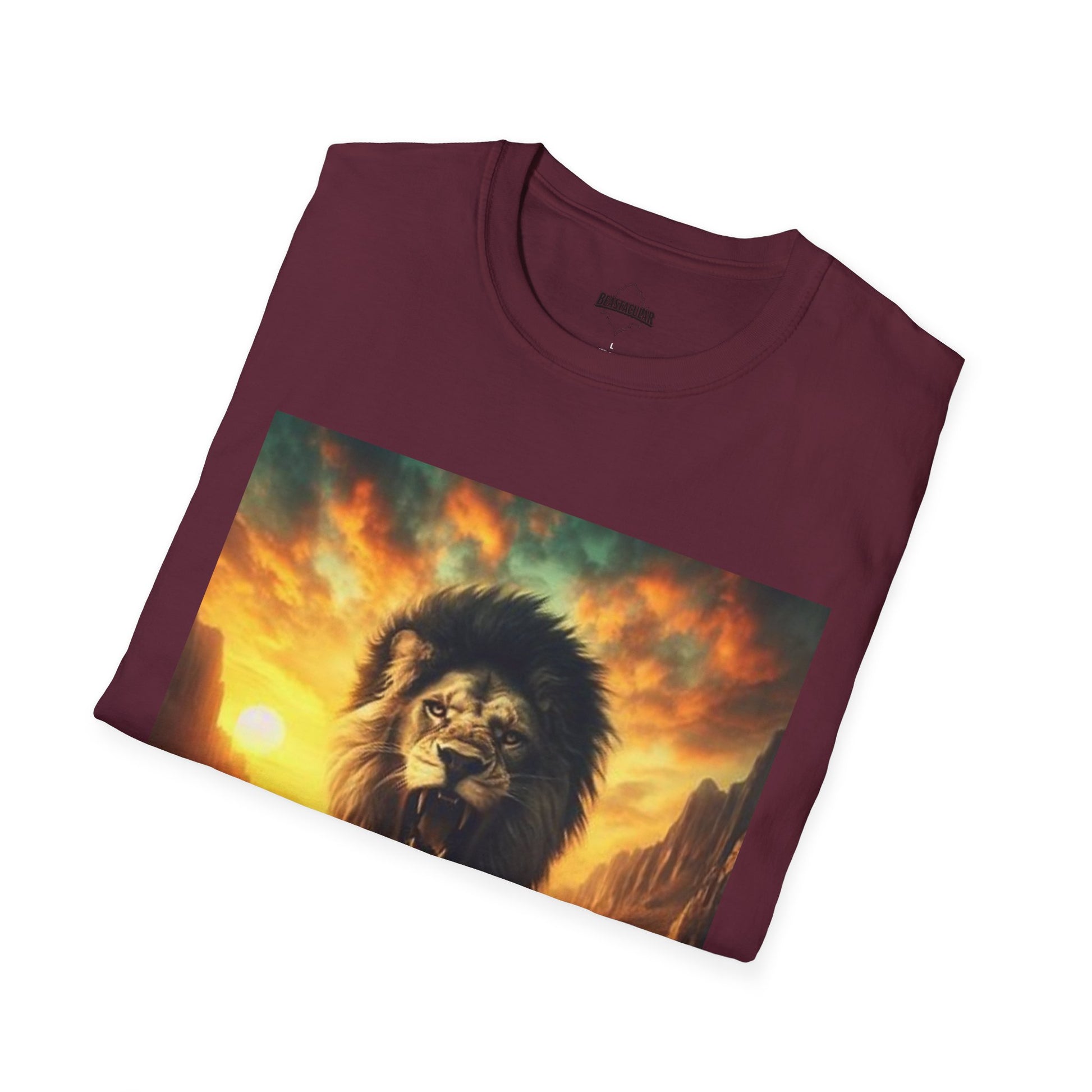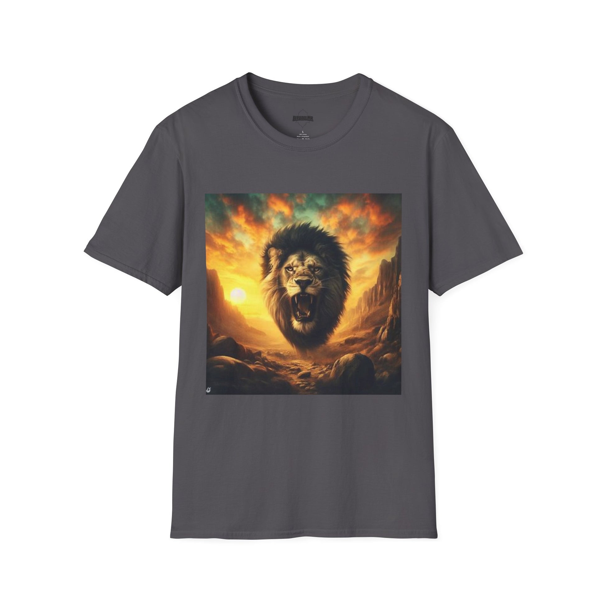 Step into your domain with a shirt that channels untamed confidence. The design captures a regal lion striding from a fiery horizon—its silhouette melting into dusk yet brimming with unstoppable energy. Printed in rich, sunset-inspired hues on a sleek, modern cut, this tee turns a casual outfit into a statement of bold sovereignty.