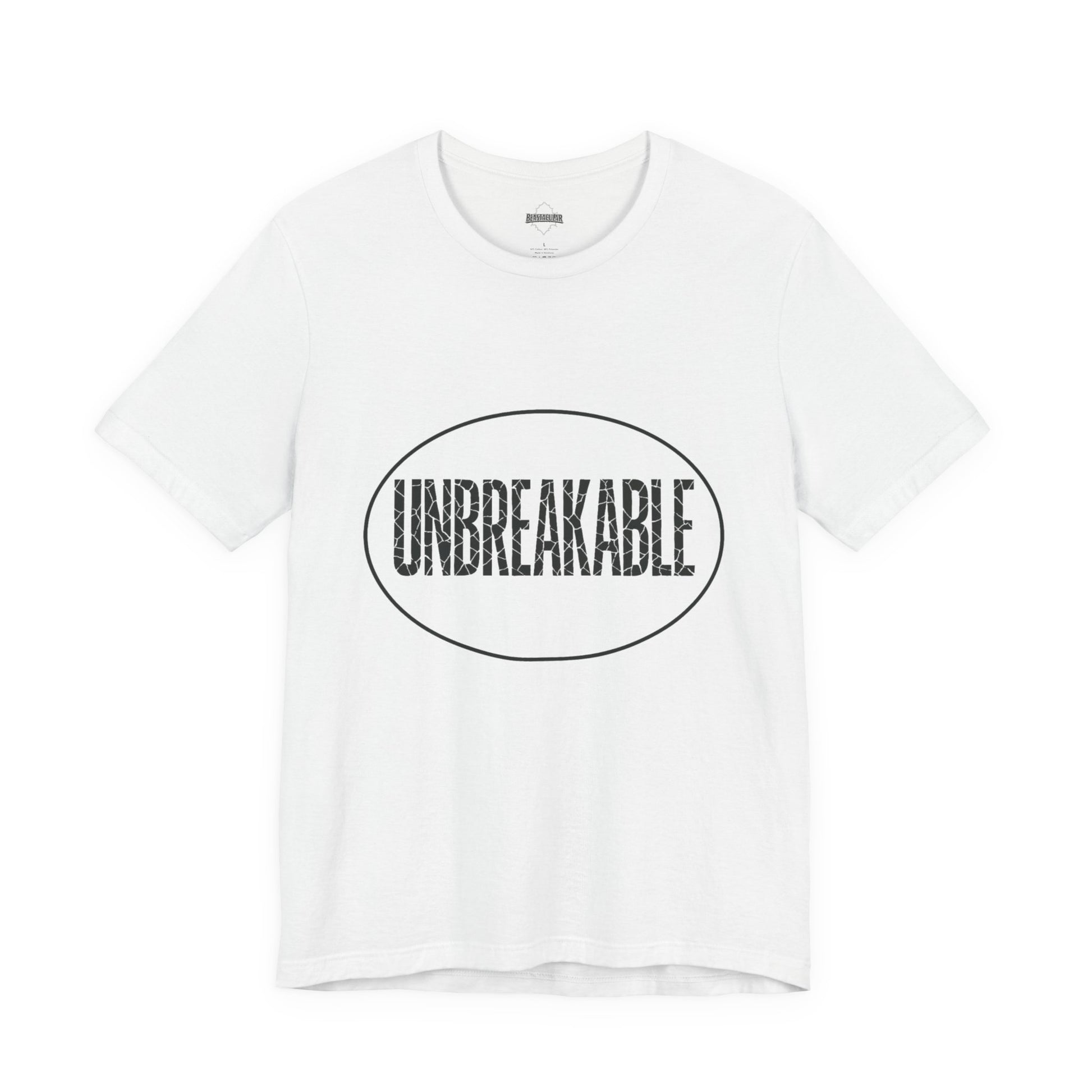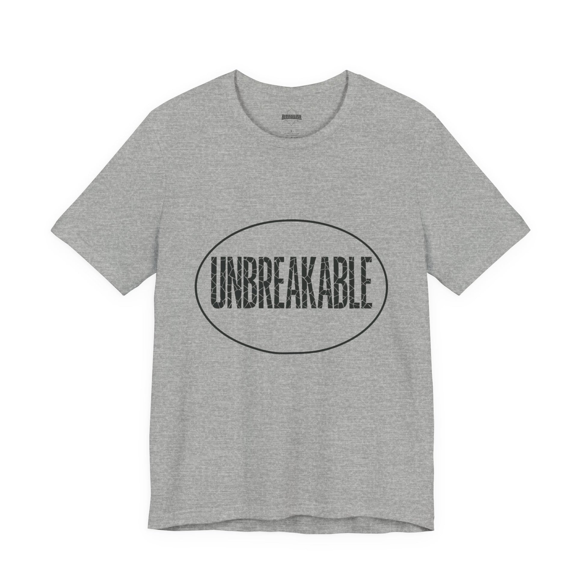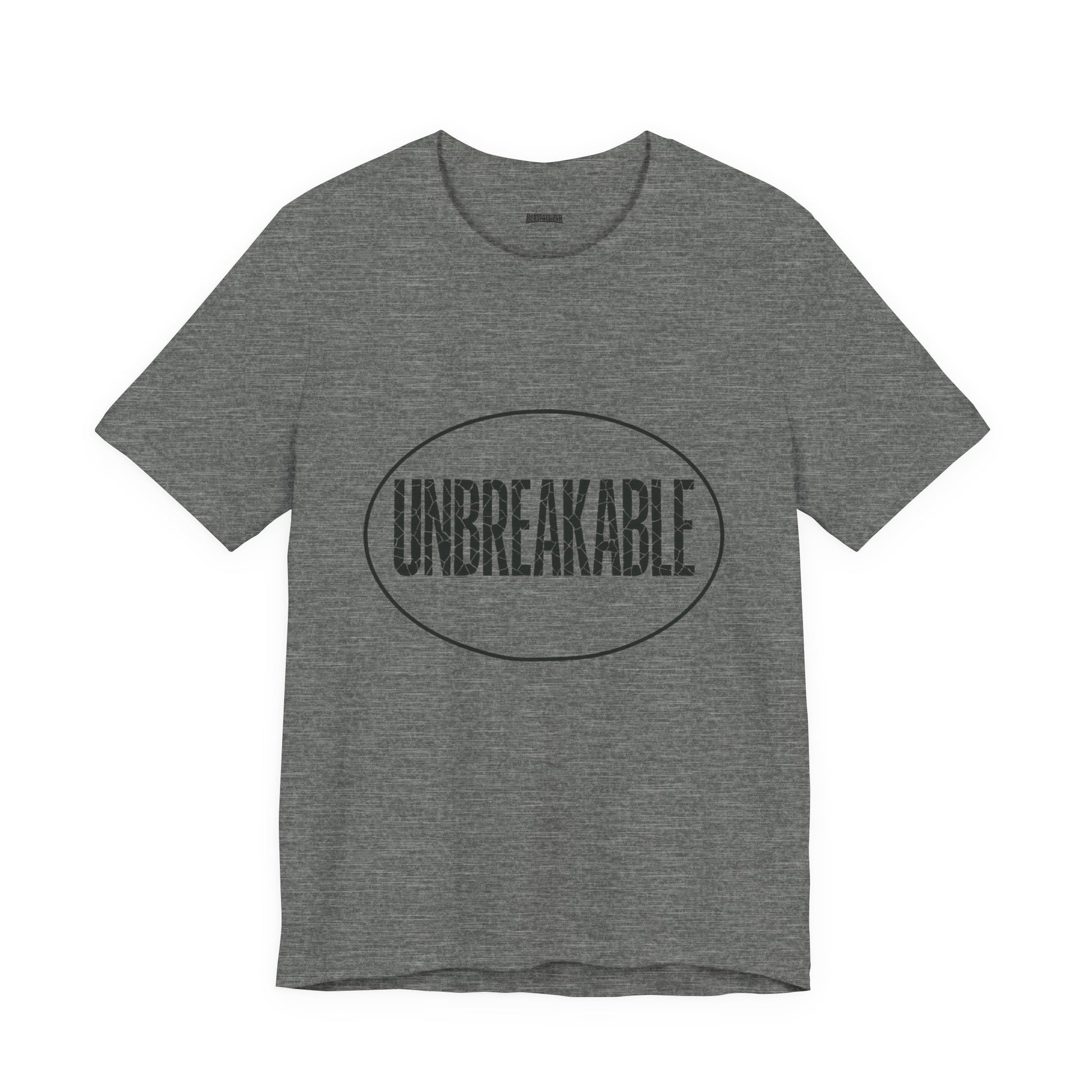 UNBREAKABLE — letters may crack, but you don’t. A soft cotton tee that lets you wear confidence every day. Ready for anything. Get yours.