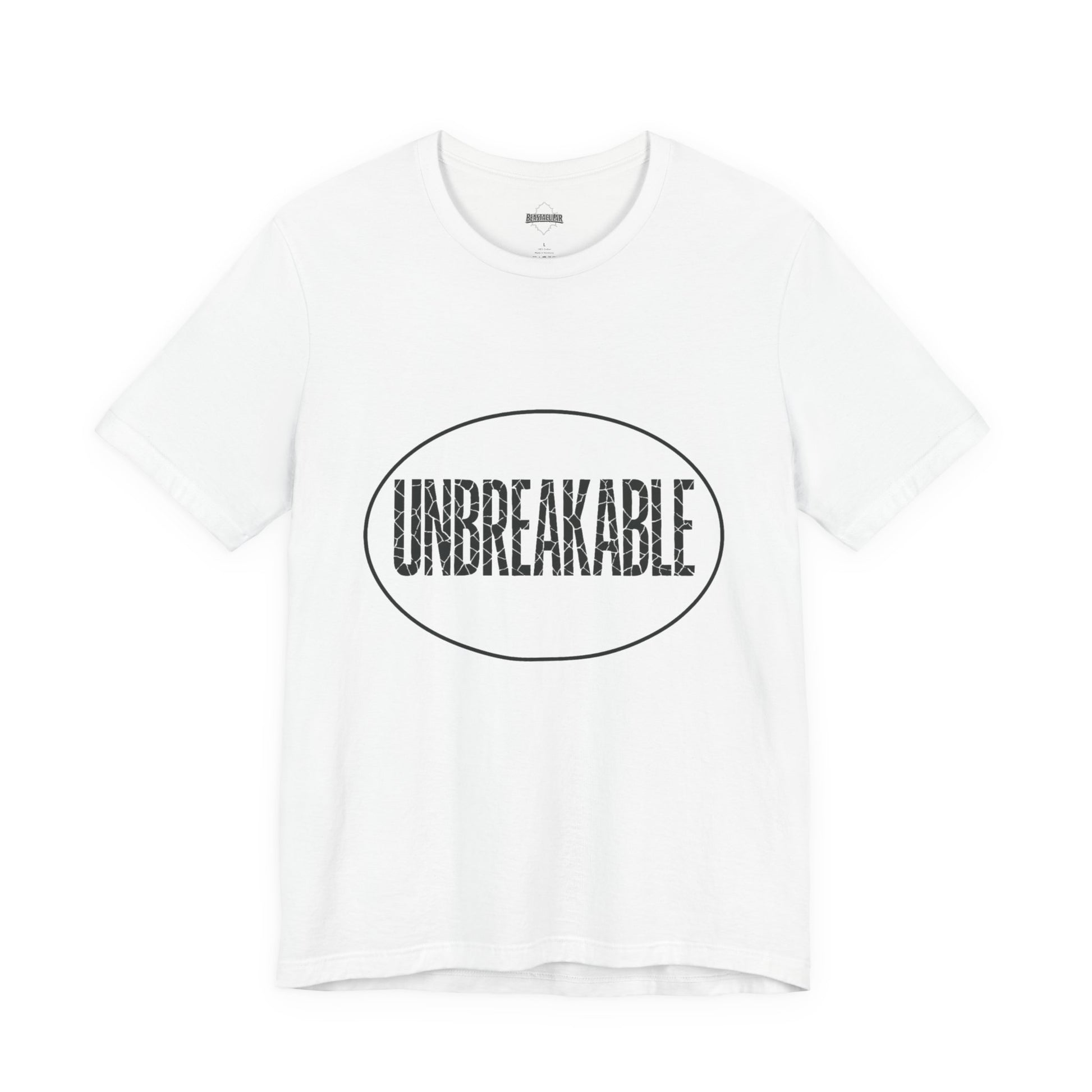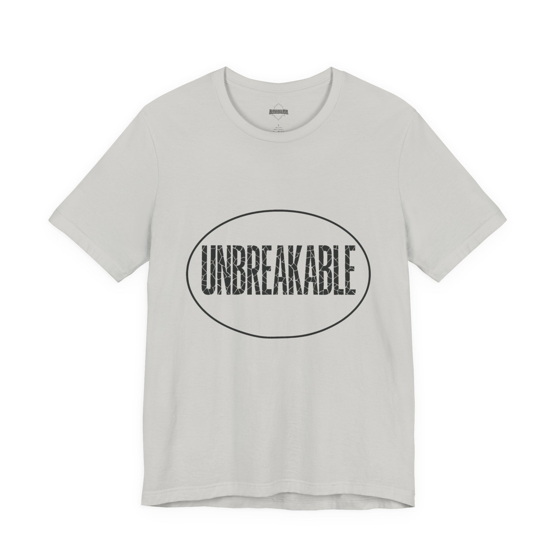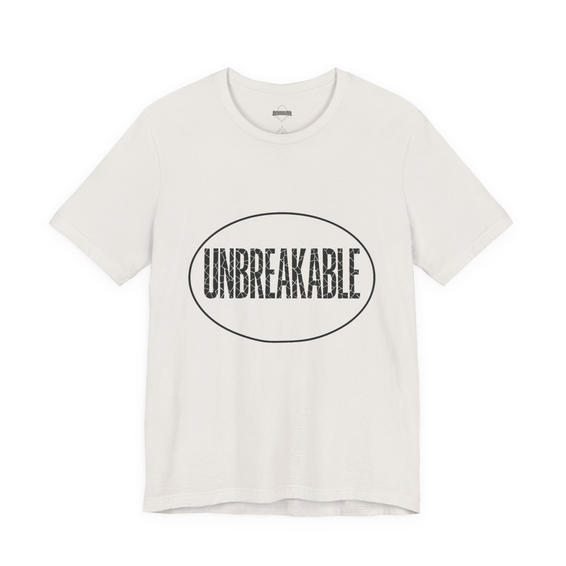UNBREAKABLE — letters may crack, but you don’t. A soft cotton tee that lets you wear confidence every day. Ready for anything. Get yours.